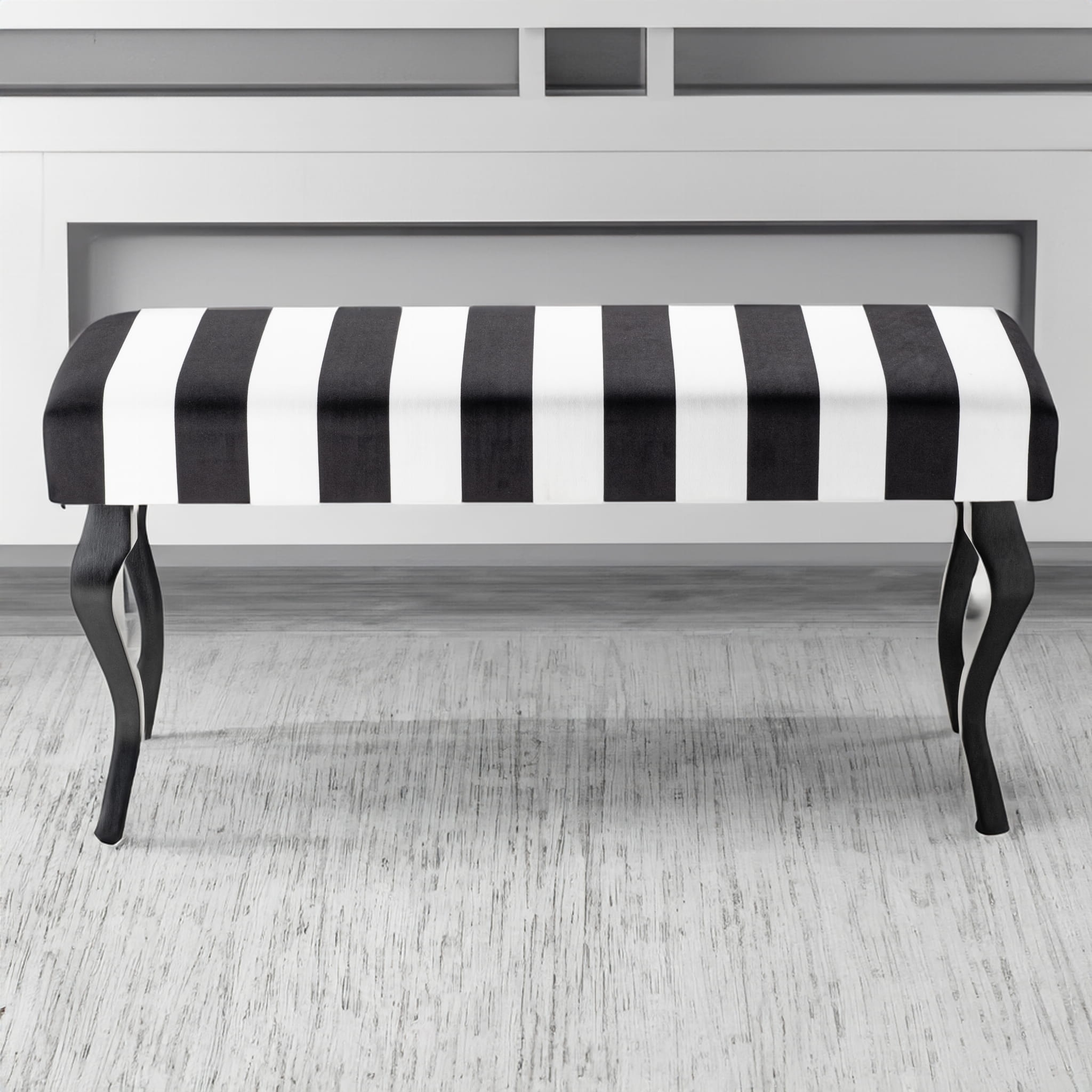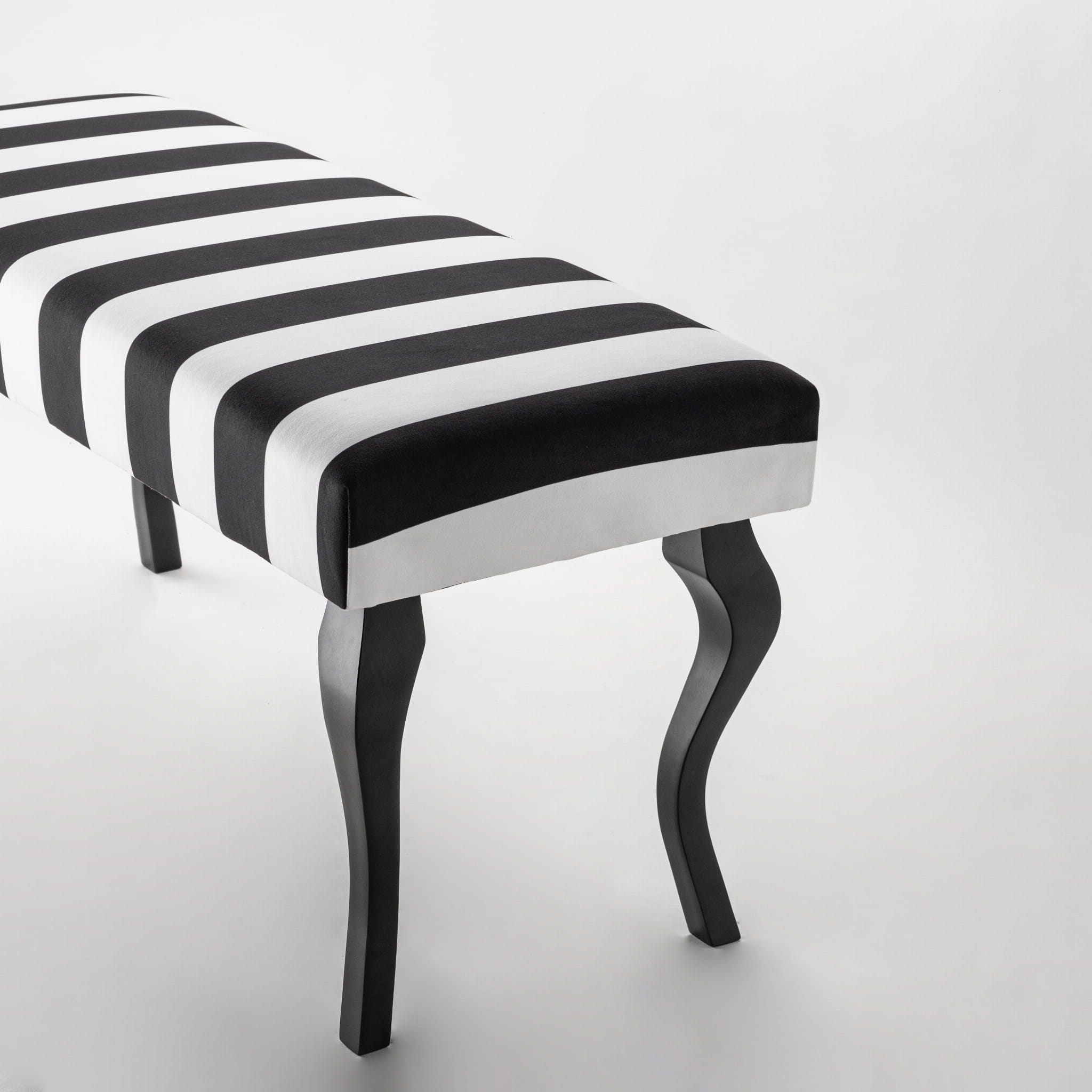 El modelo de banco Sofia combina lo moderno con lo clásico: asiento liso tapizado en tela de alta calidad con diversos motivos atemporales de moda y originales patas curvadas y estilizadas.